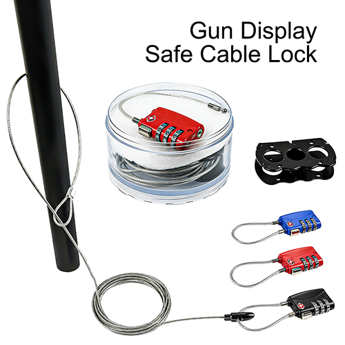 1, ena änden är ögla fixerad på hyllan, den andra änden är låst med ett digitalt lås. 2, Den långa kabeln kan användas för att låsa flera vapen eller en enda pistol för enkel visning utan att bli stulen. 3, Det digitala låset är säkert och du behöver inte oroa dig för att tappa nyckeln. 4, den grå kabeln påverkar inte visningen av pistolen visuellt, och den interna stållinan säkerställer absolut säkerhet. 5, den runda lådan och dess interna lindningsställ är bekväma att förvara och bära.