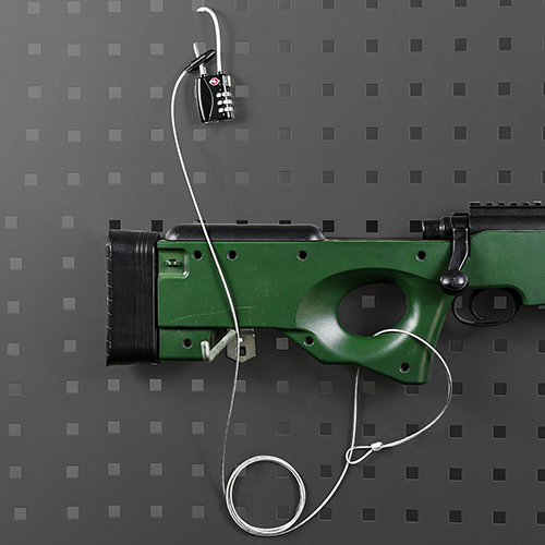2, Den långa kabeln kan användas för att låsa flera vapen eller en enda pistol för enkel visning utan att bli stulen.