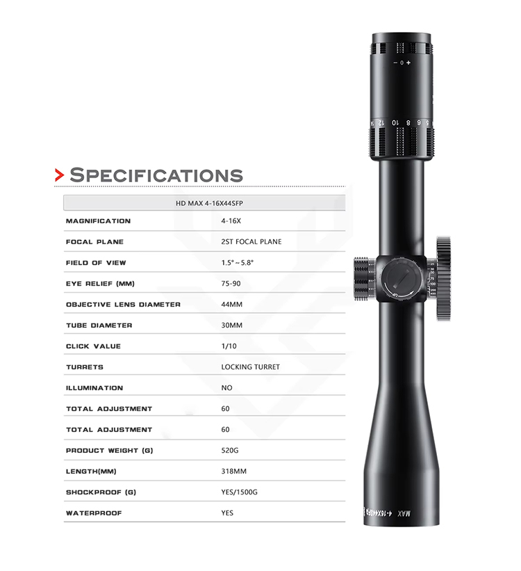 HD MAX 4-16X44SFP HD höglins jakt monokulärt teleskop grossist