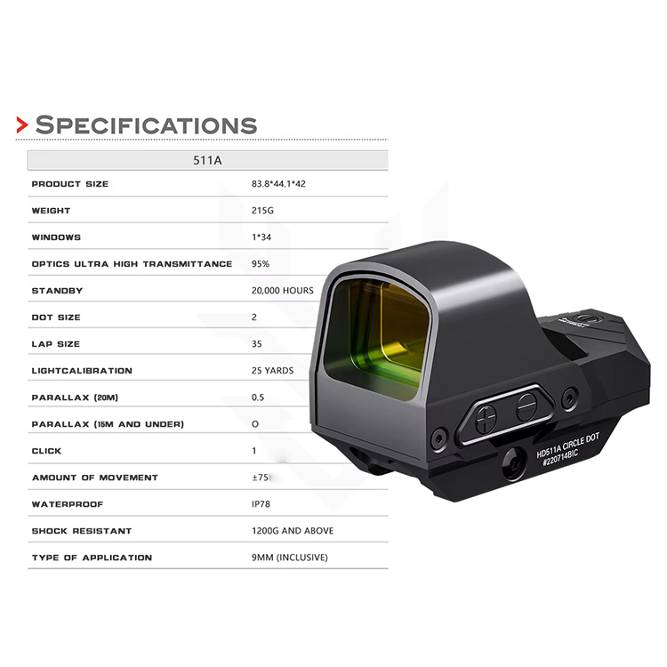 HD511A Compact Optical Jakt Red Dot Sight finns tillgängligt för grossistköp i stora kvantiteter