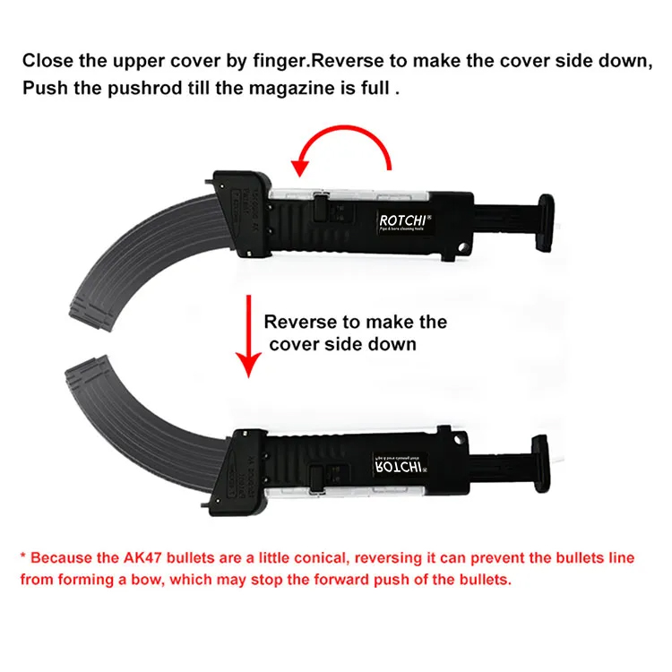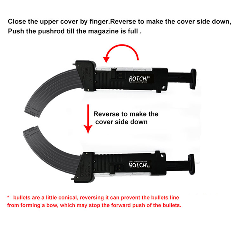 ● Används för att ladda 7,62X39 mm patroner i AK-magasin med kapacitet 10/20/30 eller mer större.