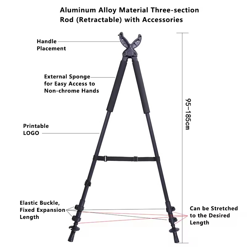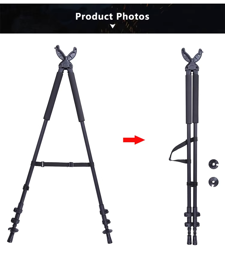 Utomhustaktisk pistol bärbar stativstöd Jakt teleskopisk skjutstång V-formad roterande okstativ