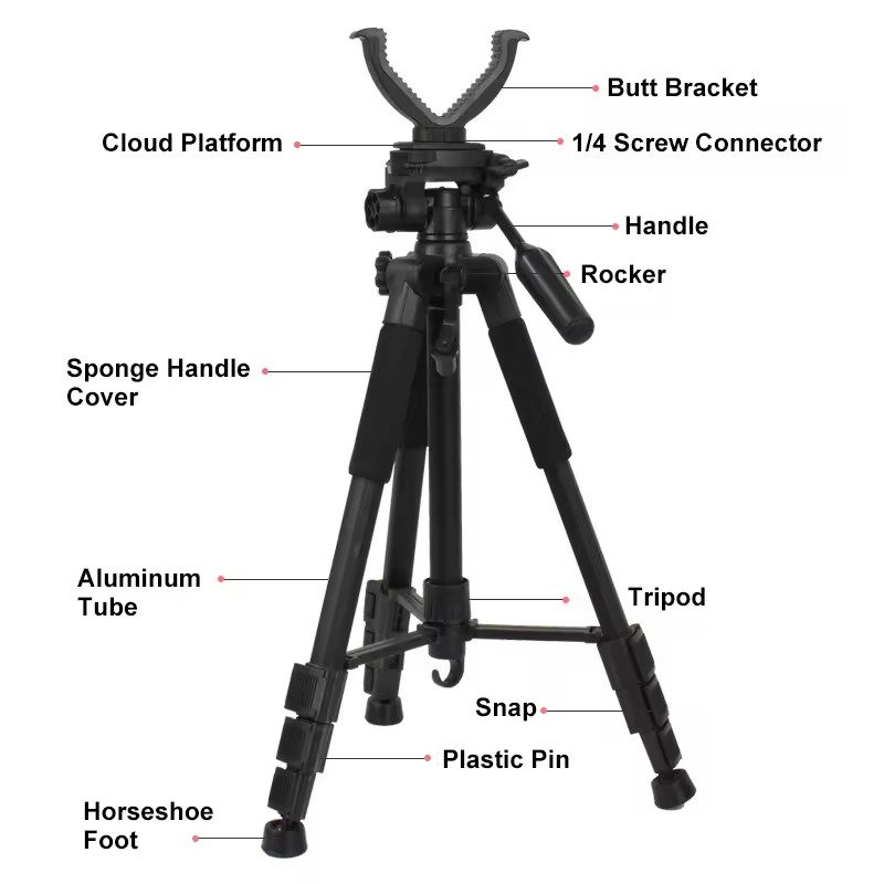 Utomhustaktisk pistol bärbar stativstöd Jakt teleskopisk skjutstång V-formad roterande okstativ