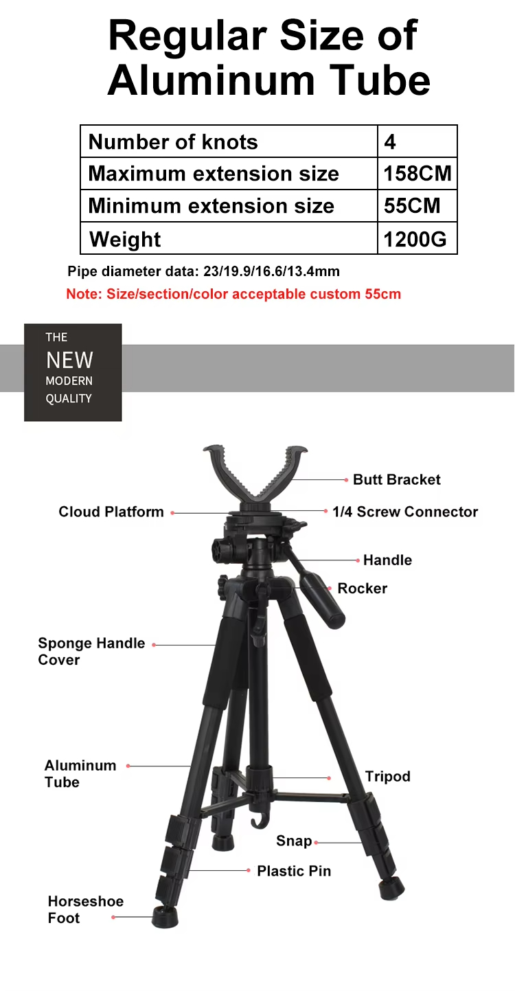 Aluminiumstativ, hållbart pistolfäste, elektriskt justerbar höjd