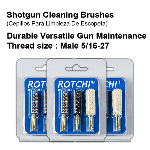 Rengöringsborste för hagelgevär 3-i-1 set, blister och kort paket. Tillgängliga storlekar: 12G, 16G, 20G, 410