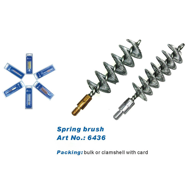 Rengöringsborsten för spiralpistolen är gjord av fjäder med hög elasticitet. Den är idealisk för att rengöra de mässingsrester som finns kvar på hålet. Vi tillhandahåller förpackningar för olika behov, som bulk, clamshell/dubbel blister eller 10 st/påse.