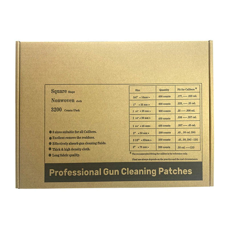 Pistolrengöringssats Tjock ovävd trasa Fyrkantig/Runda 8 storlekar för alla kalibrar i 1 universalpaket för gevär Pistoler Handvapen Hagelgevär luftgevär
