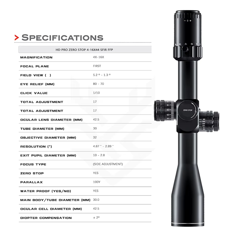 ZERO STOP 4-16X44 SFIR FFP-A 30MM Diameter HD Ljussändande Noll Stop Hunting Scope Ffp